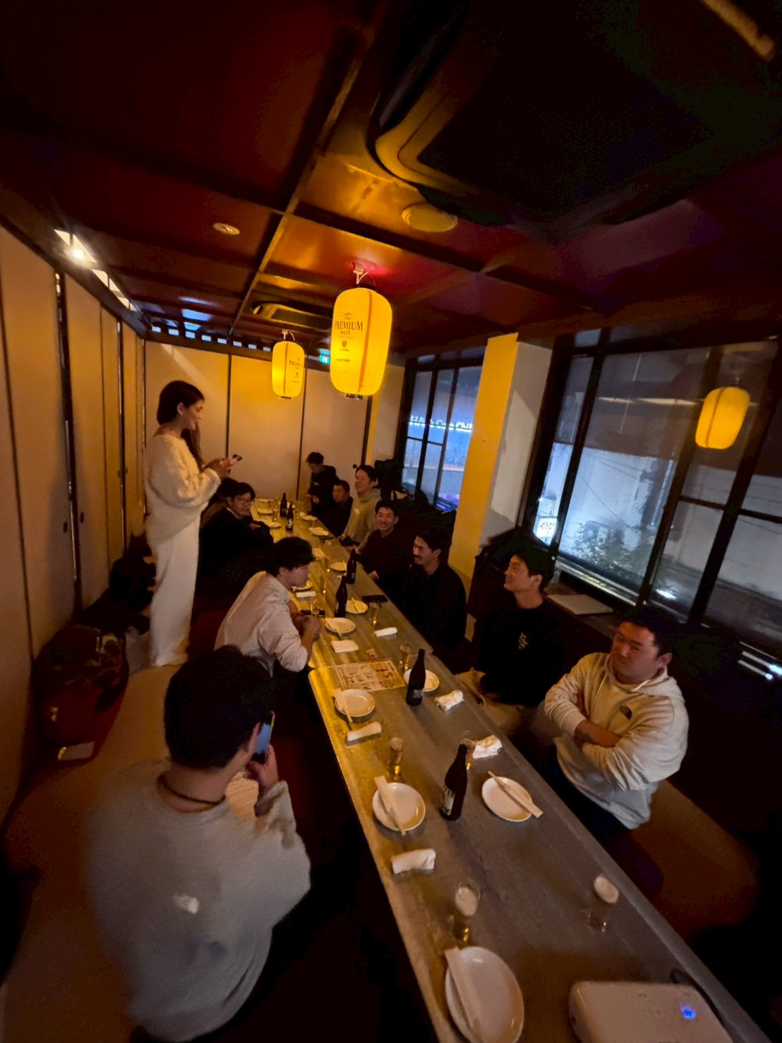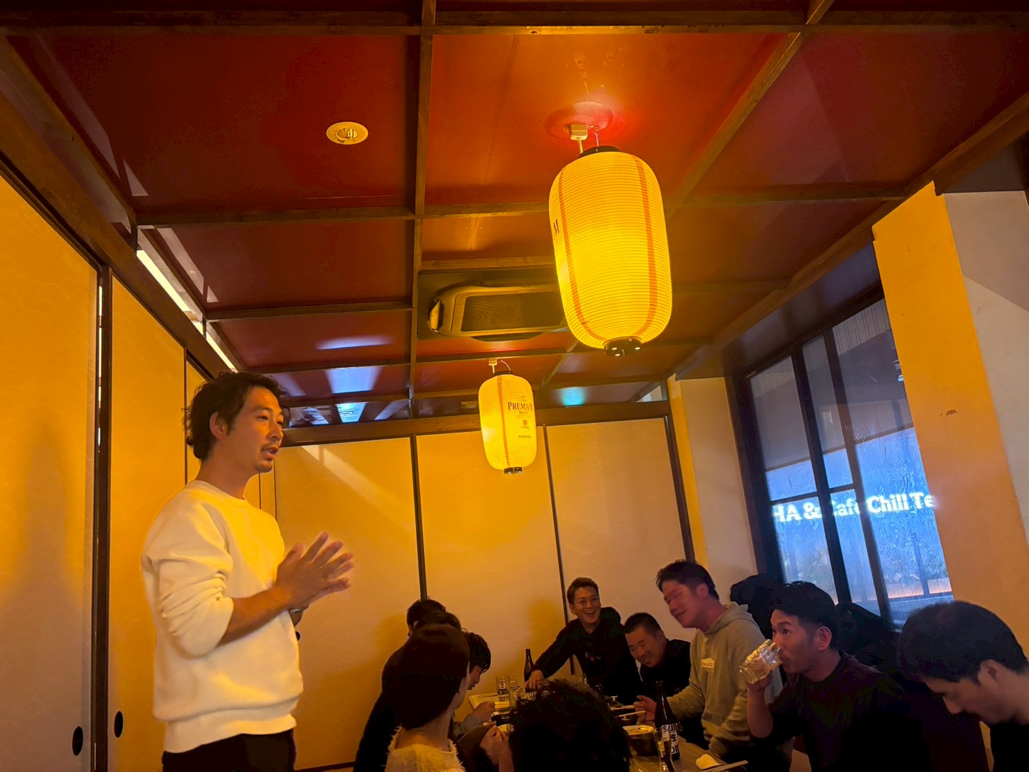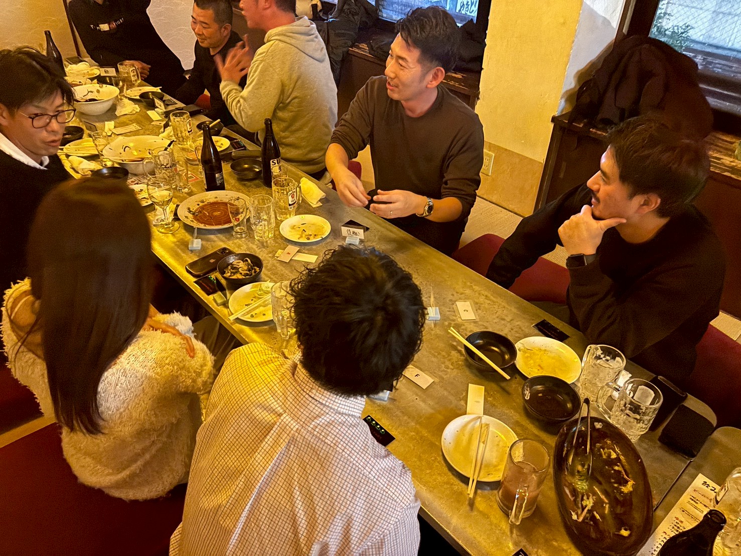 ボウリング大会のあとは、酒と飯のひら井三宮店に移動し、忘年例会の開催です。